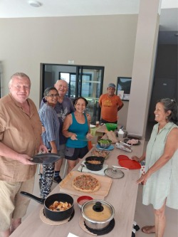 Au menu : rougail z'œufs, salade d’espadon fumé, fougasse alsacienne et gâteau chocolat-banane. Des plats préparés et apportés par les habitants eux-mêmes, dans un esprit de partage et de découverte.