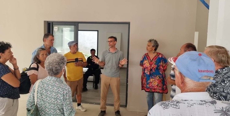 Moment central de la rencontre : la visite du béguinage, conduite par Julien Martin, maître d’œuvre du projet chez Habitat Solutions.