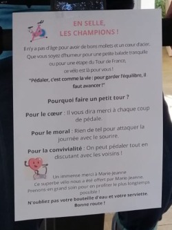 La phrase affichée à côté du vélo le dit simplement :