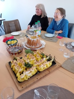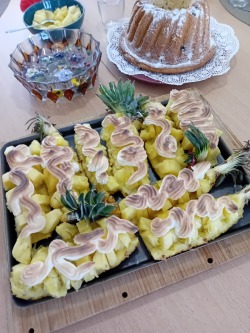 Côté dessert, place à la douceur avec un ananas meringué, accompagné du traditionnel Kougelhopf et d’un café. Une fin de repas gourmande, propice à prolonger les échanges.